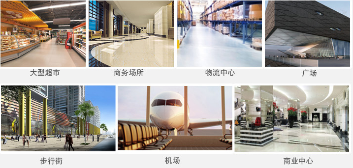大型物流配送中心、工礦企業(yè)、學(xué)校、體育中心、廣場、公園、博物館、汽車站、火車站、飛機(jī)場、停車場、碼頭、大型生活小區(qū)、街道、商業(yè)中心、步行街等。