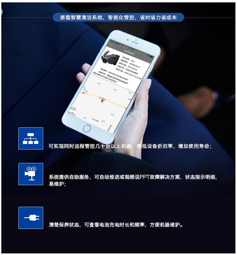 S56B智慧型洗地機,特別適合500m2-2000m2場所使用。低噪音,是醫院、學校等噪音苛刻場所的最佳選擇。洗擦、吸干一次性完成,顯著提升工作效率,提高衛生質量。