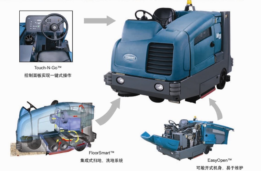 ·室外:坦能掃洗一體機工作效率高,一次通過可立即干燥地面